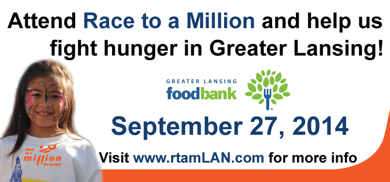 Billboard design for Lansing, Michigan-area event. Race to a Million is an annual event hosted by Human Arc. The first Race to a Million was held in Cleveland. The beneficiaries of these events are local food banks. We were fortunate enough to secure advertising space in the Greater Lansing area and created a series of billboards to advertise the race.